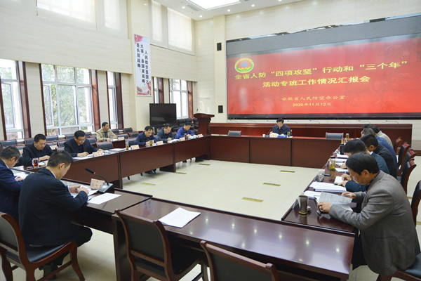 11月12日,省人防辦召開(kāi)“四項(xiàng)攻堅(jiān)”行動(dòng)和“三個(gè)年”活動(dòng)專班工作情況匯報(bào)會(huì),省人防辦黨組書(shū)記、主任倪玉平認(rèn)真聽(tīng)取并點(diǎn)評(píng)各專班工作情況,對(duì)全年目標(biāo)任務(wù)實(shí)現(xiàn)提出要求。